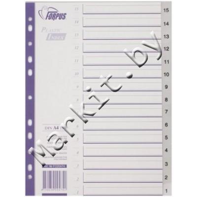 Разделители для регистраторов пластиковые Forpus, 15 л., индексы по цифрам (15-1) Код: 32594