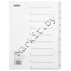 Разделители для регистраторов пластиковые Index, 10 л., индексы по цифрам (1-10) Код: 32606