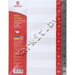 Разделители для регистраторов пластиковые Optima, 10 л., индексы по цифрам (1-10) Код: 32611