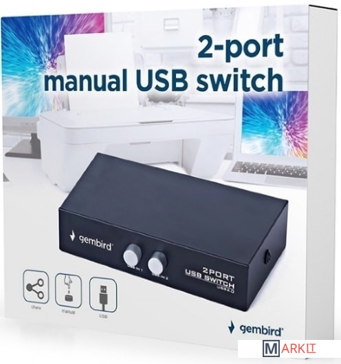 Для USB принтера, сканера или любого USB устройства2 компьютера могут иметь доступ к одному (к нескольким USB устройствам, если используется USB разветвитель)2 входных USB 2.0 разъёма «B» male, один выходной разъём «A»female