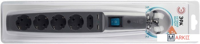 Markit » Стабилизаторы, сетевые фильтры, удлинители » Сетевой фильтр ЭРА 5 розеток, 2 м, антрацит (SFU-5es-2m-B)