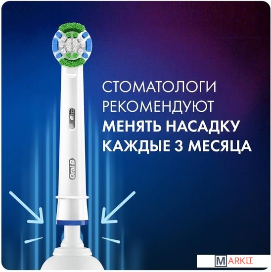 Улучшенные насадки Oral-B Precision Clean оснащены новейшими щетинками CleanMaximiser, которые меняют цвет при необходимости замены насадки, обеспечивая ее свежесть и эффективность для оптимальной чистки.Технология щетинок CleanMaximiser.Стоматологи рекомендуют менять насадку зубной щетки каждые три месяца. Улучшенные сменные насадки Oral-B 3D White оснащены зелеными щетинками CleanMaximiser, которые желтеют, напоминая, что настало время заменить насадку для эффективной чистки.