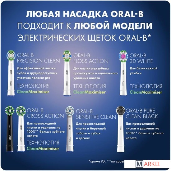 Совместимые модели Подходит ко всем электрическим зубным щеткам Oral-B, кроме звуковых электрических зубных щеток Oral-B Sonic/Pulsonic, а также Oral-B iO Series.