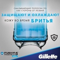 Сменные кассеты для мужской бритвы Gillette Fusion5 ProShield Chill оснащены 5 лезвиями с антифрикционным покрытием.Благодаря смазывающим полоскам, расположенным до и после лезвий, бритва защищает кожу от раздражения и охлаждает ее во время бритья.Технология FlexBall обеспечивает идеальное повторение контуров лица и позволяет сбривать буквально каждый волосок. Точный триммер на обратной стороне удобен для обработки труднодоступных участков и ухода за бородой и усами.Одной сменной кассеты хватает на один месяц бритья. К мужским бритвам Fusion5 ProShield Chill подходят все сменные кассеты Fusion5.