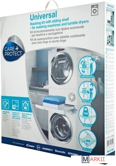 Candy WSK1110U – комплект для установки стиральной и сушильной машины в колонну с выкатывающейся полочкой для белья. Полочка выкатывается на 36 см и выдерживает нагрузку до 12 кг. Соединительный элемент подходит для сушильных и стиральных машин фронтального типа глубиной корпуса от 47 до 62 см.Обратите внимание: правильным способом установки колонны "стиральная машина + сушильная машина" является установка стиральной машины снизу, а сушильной машины сверху.Важно: после покупки внимательно ознакомьтесь с инструкцией к данному стыковочному комплекту! Данный стыковочный комплект необходимо обязательно фиксировать к стене по задней стенке стыковочного комплекта для обеспечения устойчивости колонны.Стыковочный комплект WSK1110U универсальный и может быть установлен на любые стиральные машины глубиной от 47 см до 62 см. При этом размеры корпуса стыковочного комплекта составляют 60 см по ширине и 52 см по глубине (57 см с учётом ручки выдвижного поддона для белья).