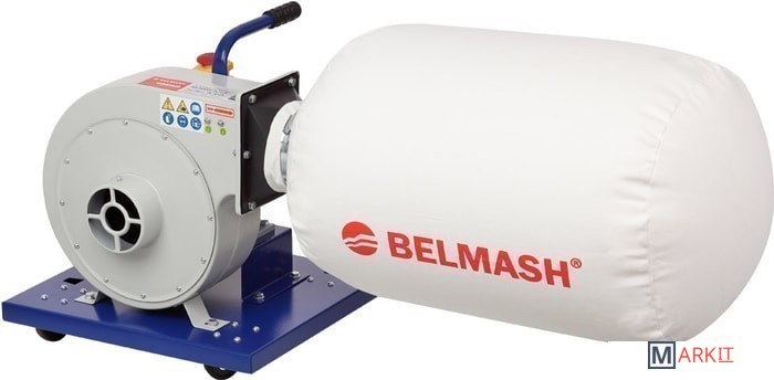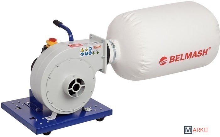Модель BELMASH DC850 - самая компактная в линейке вытяжек BELMASH.Предназначена для удаления отходов резания, образующихся в процессе обработки древесных материалов. Конструкция проста: на основании закреплены двигатель и корпус установки. Фильтр-мешок присоединяется к корпусу через конфузор и одновременно является стружкосборником. Установку легко перемещать, для этого имеются колеса и рукоятка. В комплект поставки входят запасной мешок и кронштейны для крепления вытяжки к стене.Вместо текстильного мешка можно использовать фильтр-картридж BELMASH C370A. Для этого нужно снять пластиковый конфузор, присоединить фильтрующий элемент к корпусу установки, закрепив на нем с помощью зажима BC.000.016 стружкосборник.