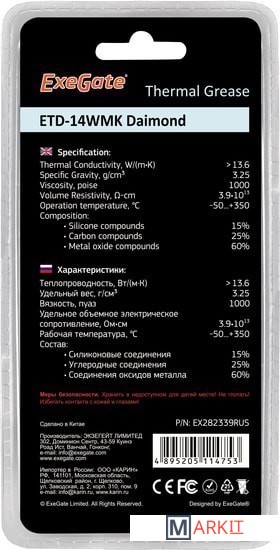 Markit » Системы охлаждения » Термопаста ExeGate ETD-14WMK Diamond EX282339RUS (2 г.)