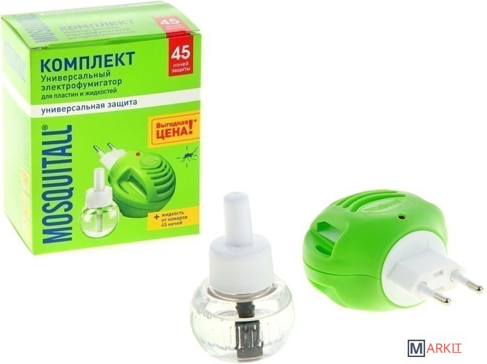 Markit » Уничтожители насекомых, отпугиватели, ловушки » Уничтожитель насекомых Mosquitall Универсальный фумигатор + 30 мл