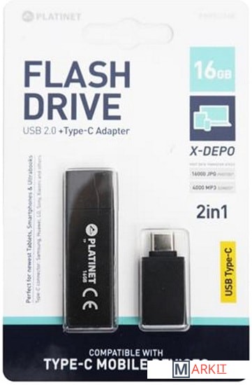 Markit » Флешки USB » USB Flash Platinet X-Depo + Type-C Adapter 16GB (черный)