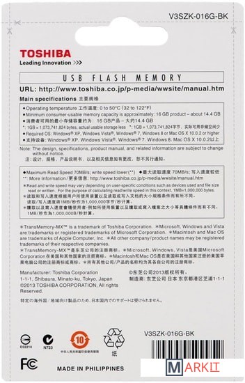 Markit » Флешки USB » USB Flash Toshiba TransMemory-MX 16GB (черный)