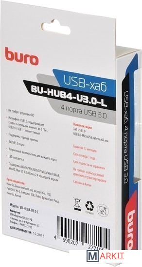 Markit » USB-хабы и док-станции » USB-хаб Buro BU-HUB4-U3.0-L