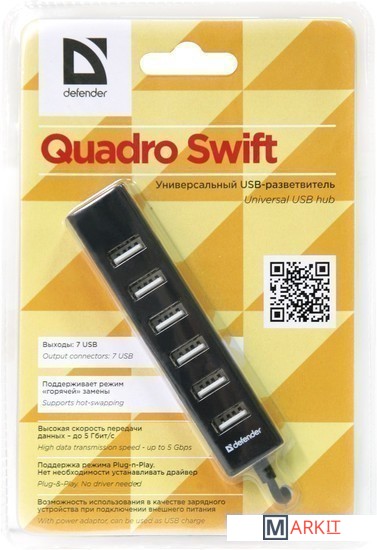 Markit » USB-хабы и док-станции » USB-хаб Defender Quadro Swift USB2.0 [83203]