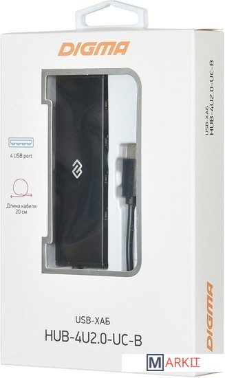 Markit » USB-хабы и док-станции » USB-хаб Digma HUB-4U2.0-UC-B
