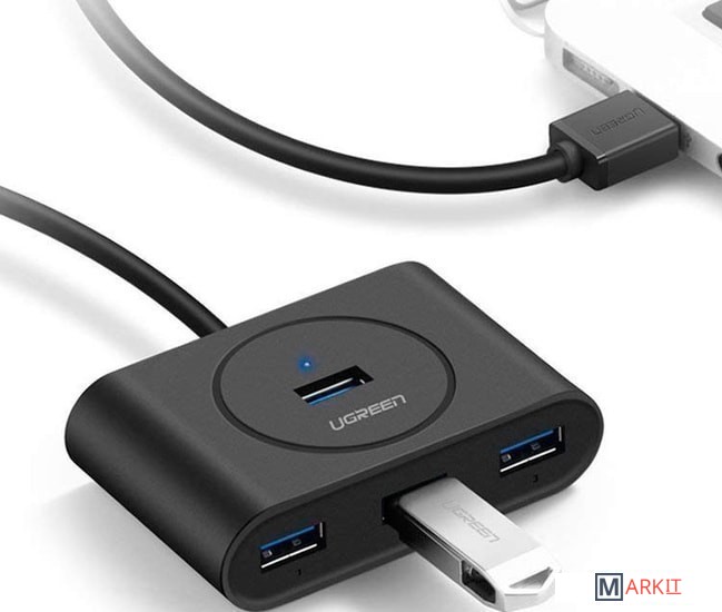 Разветвитель используется, когда вам не хватает USB портов в компьютере, либо порты расположены неудобно. USB хаб имеет 4 USB-входа, в которые вы можете подключить 4 разных устройства. Например, флешку, мышку, клавиатуру и картридер. Вы сможете использовать все 4 гаджета одновременно.