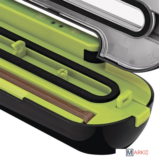 Вакууматор Kitfort КТ-1522 обеспечит долгие сроки хранения ваших любимых продуктов. Продукты, упакованные под вакуумом, сохраняют аппетитный вид, вкус и полезные свойства, а портятся существенно дольше по сравнению с обычными условиями хранения.Открытый край пакета укладывается под крышку прибора, после чего вакууматор начинает выкачивать из него воздух. В результате образования вакуума пакет плотно обжимает содержимое. Как только воздух удалён, начинается запечатка открытой стороны пакета.КТ-1522 поможет запаковать продукты в автоматическом режиме. Вакууматор откачает воздух из пакета, а затем запечатает его. Кнопка «Запечатывание» — запечатывает пакет без откачки воздуха.На КТ-1522 установлен специальный клапан напуска воздуха. Он нужен, чтобы в вакуумную камеру попал воздух, и можно было открыть крышку после вакуумирования продуктов.Для обеспечения надёжности при выкачивании воздуха, вакууматор плотно закрывается. Чтобы открыть устройство нажмите одновременно боковые кнопки прибора, которые закрепляют положение крышки при выкачивании воздуха.Магниты на дне корпуса позволяют хранить устройство на холодильнике, так оно не займёт много места на кухне. Обратите внимание, что вакууматор может не держаться на некоторых поверхностях, если слой краски на них толстый или поверхность неровная.В вакуумный пакет можно поместить документы, деньги, спички, лекарства, карту, компас и другие предметы. Это защитит их от сырости и попадания воды. Серебряные украшения, коллекционные монеты, упакованные таким способом, не будут тускнеть со временем.Для вакуумирования используют специальные пакеты или плёнку в рулонах. Их ширина не должна превышать длины вакуумной камеры — не более 28 см. В комплектации с КТ-1522 идет комплект пакетов для вакуумирования, размерами 15 х 20 см.Создаваемое разрежение (максимум): 0.6 бар.Ширина шва пайки: 1.5 мм.Длина шнура: 1.4 м.