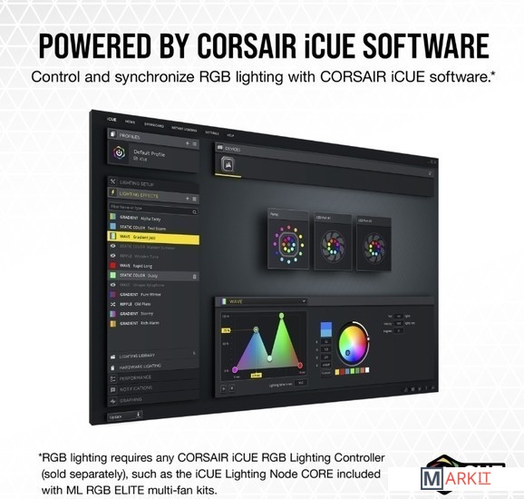 Вентиляторы ML RGB ELITE SERIES оснащены антивихревыми лопастями, которые направляют и фокусируют воздушный поток. Улучшите качество охлаждения: независимо от места установки — на впуске, выпуске, радиаторе жидкостной или воздушной системы охлаждения — технология AirGuide увеличивает статическое давление и фокусирует воздушный поток для улучшенного охлаждения.Подшипники на основе технологии магнитной левитации внутри вентиляторов ML RGB ELITE практически не подвергаются трению, почти не издают шума, а их долговечность существенно превосходит классические аналоги.Восемь сверхъярких RGB-светодиодов, подключенных к концентратору, превращают вентилятор ML RGB Elite в настоящую достопримечательность вашей сборки, излучая гипнотическое сочетание цветов и световых эффектов.Настраивайте захватывающие световые эффекты и управляйте ими: многофункциональное ПО iCUE оживит вашу систему с помощью динамической синхронизации RGB-подсветки для всех совместимых с iCUE продуктов, таких как дисплей ELITE LCD!