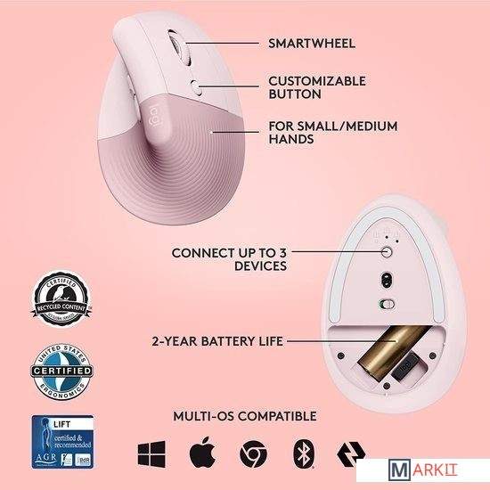 Markit » Компьютерные мыши » Вертикальная мышь Logitech Lift (розовый)
