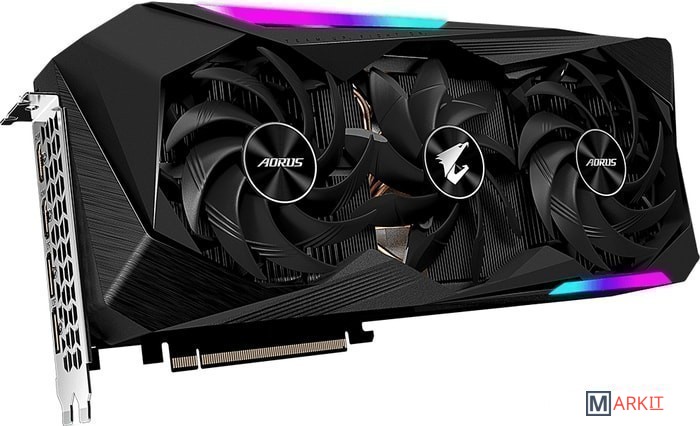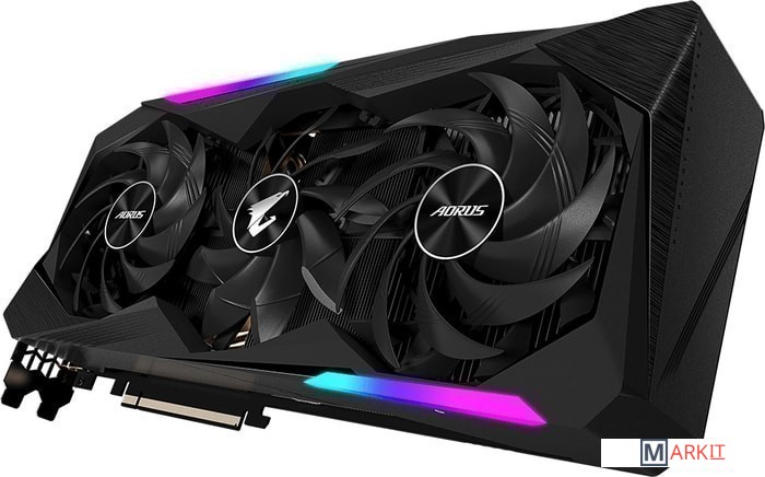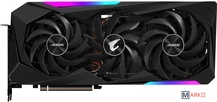 Система охлаждения в исполнении Max-Covered представлена одним 100-мм и двумя 115-мм вентиляторами с альтернативным направлением вращения. Сформированный воздушный поток полностью накрывает всю поверхность радиатора.Размещенный на графической плате прогрессивный ЖК-дисплей позволяет выводить текстовую, графическую или анимированную информацию в GIF-формате. Средствами RGB Fusion 2.0 можно выбрать вариант подсветки на основе имеющихся профилей.Настраиваемые параметры цветовой схемы, 16,7 млн. цветовых оттенков, многочисленные световые эффекты и возможность синхронизировать плату с другими устройствами семейства AORUS.