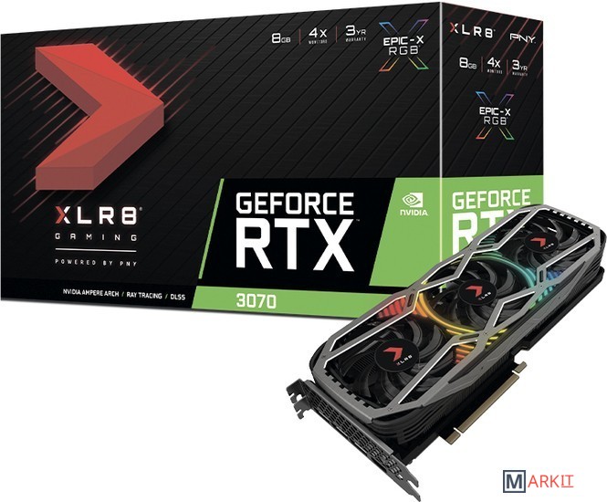 Markit » Видеокарты » Видеокарта PNY GeForce RTX 3070 8GB XLR8 Gaming REVEL EPIC-X RGB Triple Fan LHR VCG30708LTFXPPB