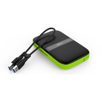 Защищенный внешний жесткий диск, который прошел испытания на соответствие американскому военному стандарту устойчивости к ударам MIL-STD-810G 516.6 Procedure IV. Обладает степенью устойчивости к влаге IPX4, дающей защиту в случае попадания брызг жидкости на поверхность устройства.