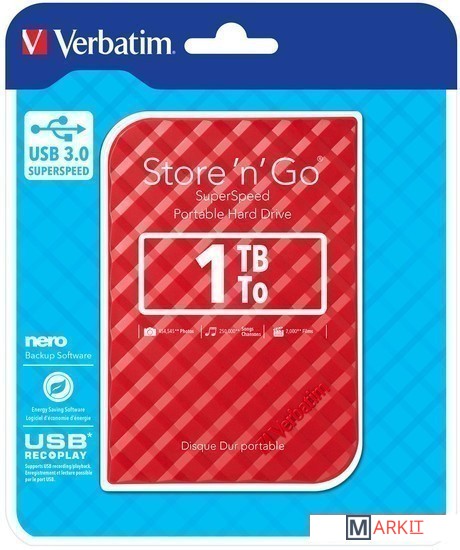 Markit » Внешние накопители (HDD и SSD) » Внешний накопитель Verbatim Store 'n' Go USB 3.0 1TB Красный [53203]