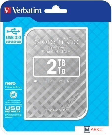 Markit » Внешние накопители (HDD и SSD) » Внешний накопитель Verbatim Store 'n' Go USB 3.0 2TB Серебристый [53198]